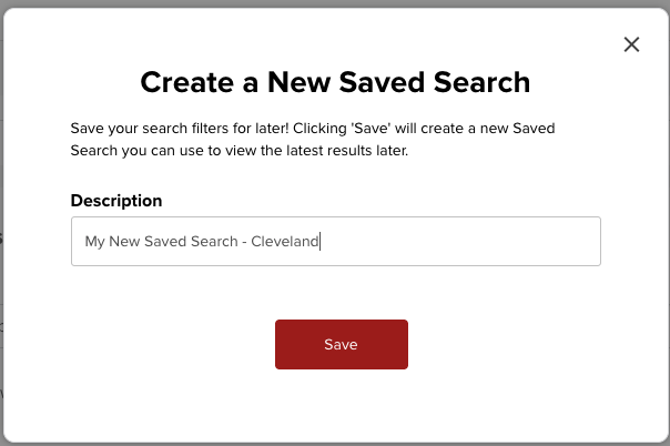 This will Open a Window that will allow you to enter a 'Description' for your search. Enter a Description, then click SAVE.