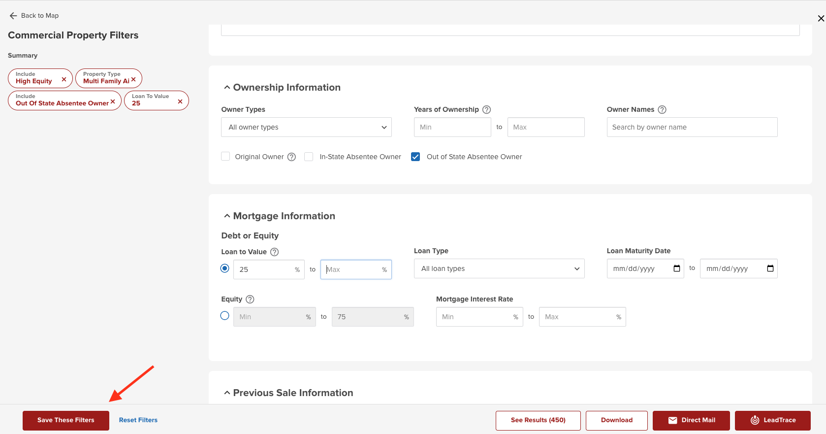 Once you have entered all of the FILTERS you would like to Save, click on 'SAVE THESE FILTERS' at the bottom of the FILTERS button